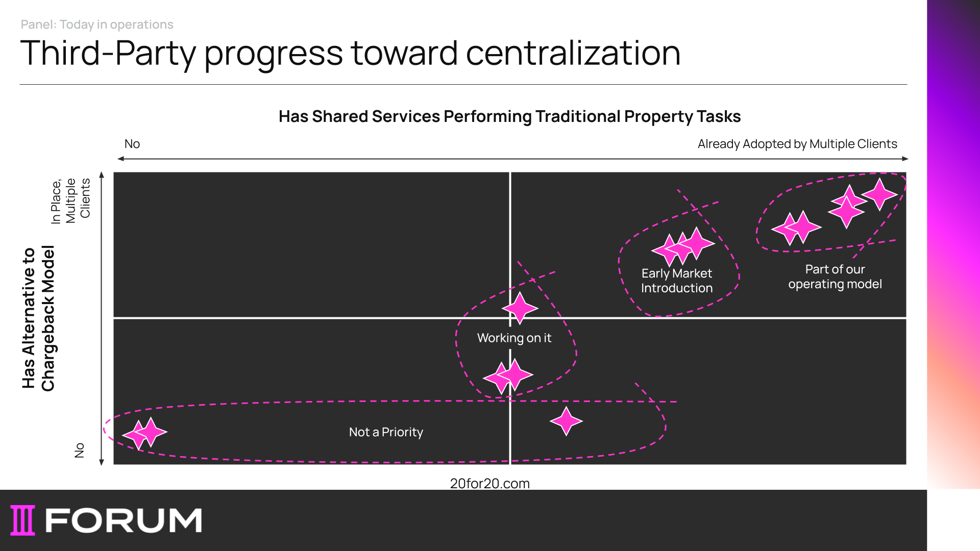 That’s why, as Melody Reid, Managing Director, Property Systems Engagement, made clear, successful centralization isn’t just a systems upgrade. It’s a people-centered shift—and it only works when every person is brought along for the ride. FWIW: This sentiment was echoed in the change management presentation from the Windsor team later at Forum.
