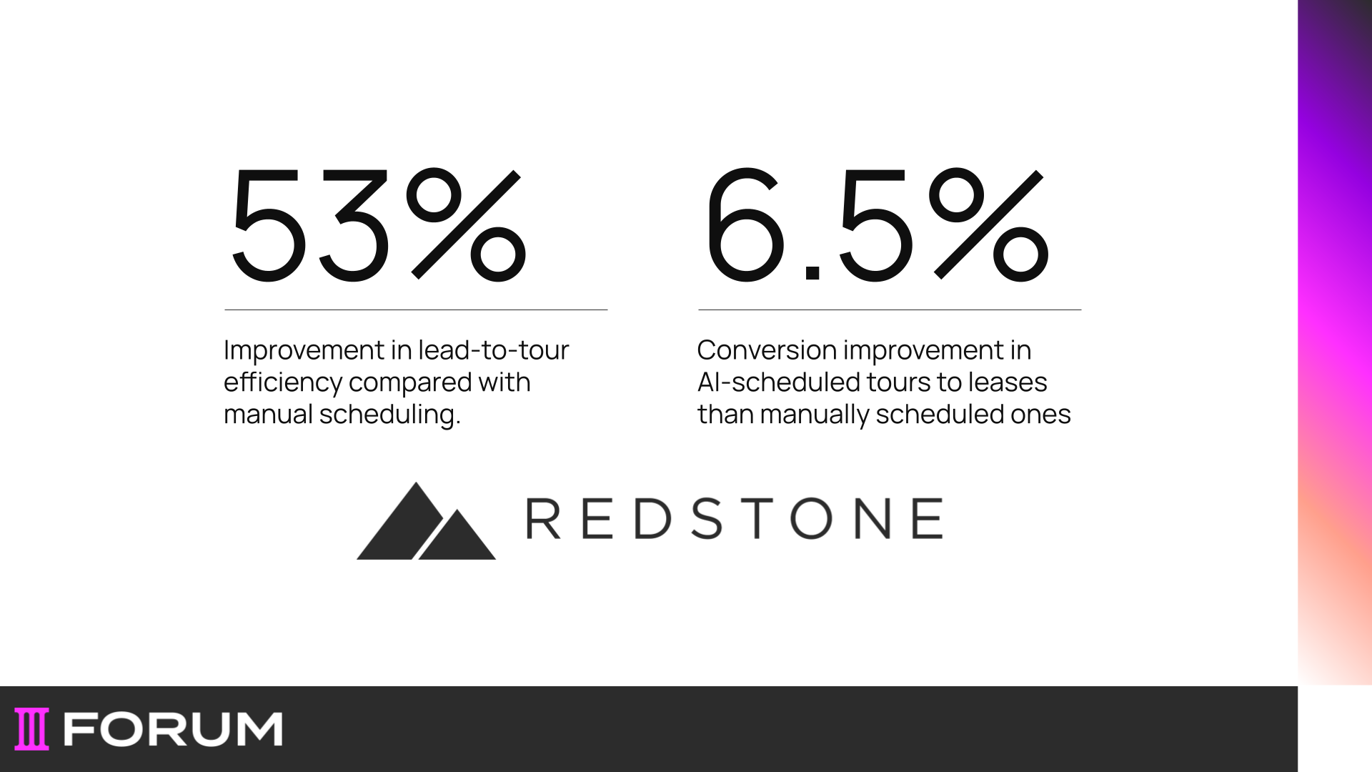 - 6.5% lift in lease conversion from AI-scheduled tours versus manually scheduled ones