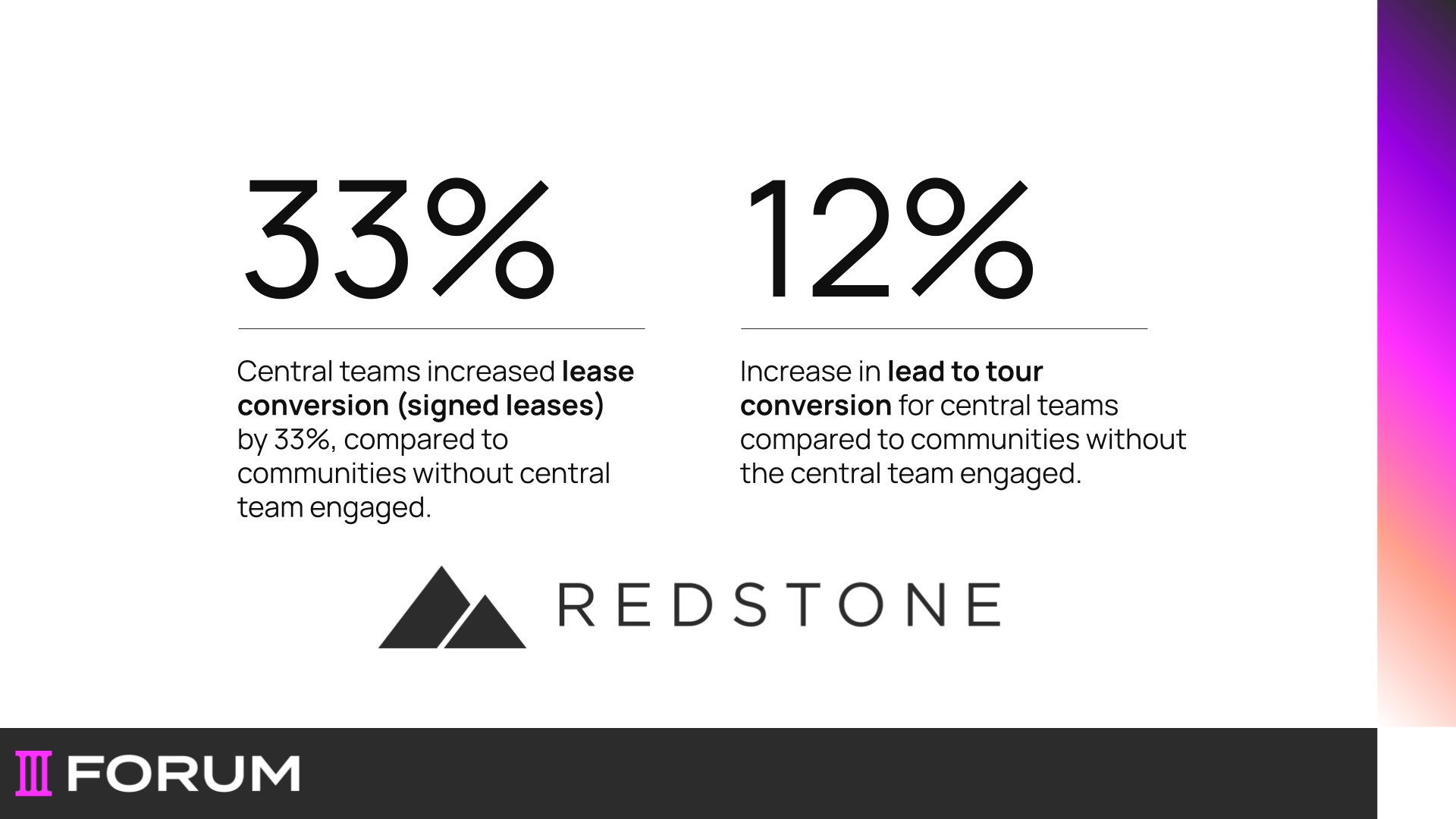 - 33% higher lease conversion (signed leases) at communities with central teams compared to those without